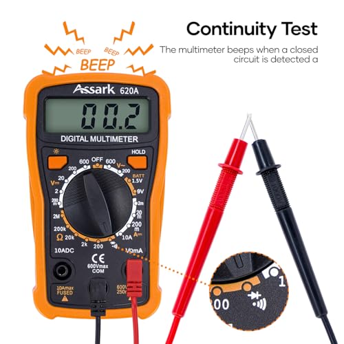 【Entry-Level Digital Multimete】 Measure AC/DC Voltage, DC Current, Resistance, Circuit Continuity Test, Battery Check, Diode Test. Works as a voltmeter, ammeter, ohmmeter, car battery tester, Ampere Meters, voltage tester. It is good for home use, school and DIY-beginner!
