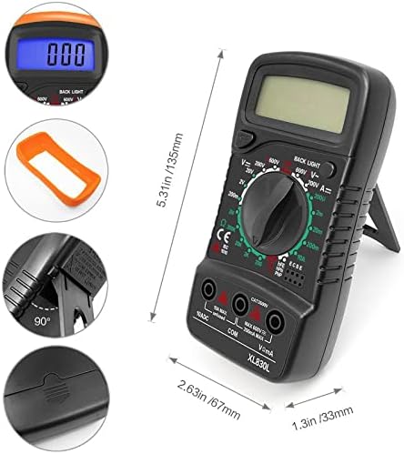 EASY TO USE: 2.7″ Large Backlit LCD Display, Data Hold, Easy to Read Large Back-light Screen for visibility in dimly light areas.Widely use in Car repair, Home use, Schools, laboratories, Families and factories, suitable for Car Drivers, Beginners, Professional Electricians, Housewives, Students Use.