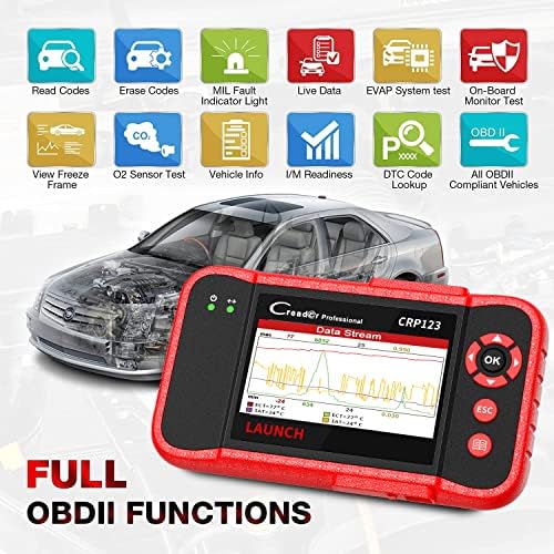[Worthy to Buy]–Compared to other automotive scanners priced between 50-200 dollars, LAUNCH CRP123 has the multiple advantages.With full OBDII functions, it also serves as an ABS&SRS&transmission scanner and engine checker. It can be used to check if your car is ready to pass the annual test through the I/M readiness menu, saving money and ensuring safety.Furthermore, it has various features, such as real-time data stream shown up, built-in DTC library, data record, playback and printing etc.