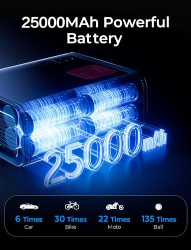 【Powerful Air Compressor】Built-in 25,000mAh rechargeable high-capacity battery, tire inflator portable air compressor does not require an external power supply while working. +30% more power than other ordinary electric air pumps, which can provide a cordless continuous runtime up to 2 hours. What’s more, it also comes with a charger cable for cord charging