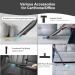 Multiple Accessories for Efficient Cleaning:equipped with three brushes, the car vacuum cleaner can effectively remove dirt, dust, and debris from your car, home or office. The floor brush with extended straight pipe is specifically designed for hard floors and carpets, enabling you to clean without needing to bend over. The square brush is specialized in removing dust and dirt from sofas or beds. Additionally, the combined flat brush is perfect for tackling narrow areas.
