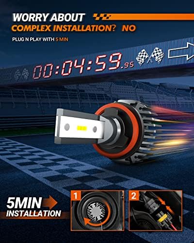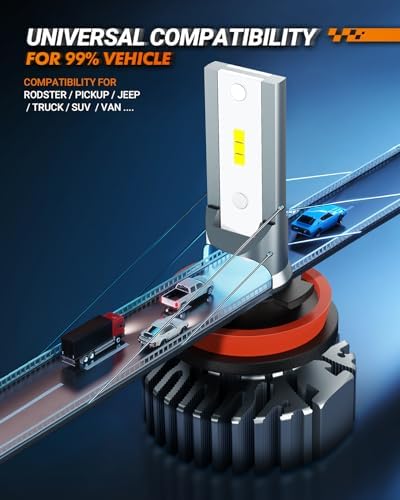 5 Min Easy Installation: Plug-and-play, H11/H8/H9 led low beam bulb has 1:1 mini design same as halogen bulb. 0.5-inch ultra-thin heat sink perfectly fits for 99% vehicle housings and factory sockets